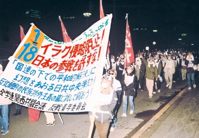 「イラク侵略阻止! 日本の参戦阻止!」 関西の労学が自民党大阪府連・米総領事館に怒りのデモ (1月18日) |