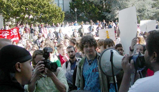 以下、見出し バークレーの学友と共にデモンストレーション 3・5 深めよ! 全米学生・労働者との団結を 全学連アメリカ派遣団のアピール 日本の地でたたかうすべての労働者・学生諸君! わがアメリカ現地闘争団は今、ニューヨーク・マンハッタンで、ブッシュ政権のイラクへの侵略戦争を阻止するためにアメリカの労働者・学生たちと交流し闘いを組織化している。 三月七日、米・英・スペインの三ヵ国は、十七日を期限とする対イラク決議修正案を国連安保理に提出した。彼らは、仏・独・露が三月五日にこの対イラク決議に反対する態度を表明したことに激怒し、新たな国連決議が採択されなくともイラクにたいする戦争に踏みきる意志をむきだしにしたのだ。 マンハッタンでは高層ビル群の上空を警察ヘリが旋回し、国連本部ビル前では警察が柵を張りめぐらし反対運動を封じこめている。戦争前夜のアメリカの都市は厳戒体制が敷かれ、張りつめた空気に覆われている。 さる三月五日には全米、全世界で「イラクにたいする戦争を止めろ!」の声が巻き起こった。アメリカ各地で学生ストが決行され、オーストラリアでも三万人の学生がストライキに起ちあがった。わが現地闘争団はこの日、ベトナム反戦運動発祥の地として有名なカリフォルニア大学バークレー校で、「Berkeley Stop the War」の呼びかけでおこなわれたラリーに参加し、様々な顔や髪の色の学生たち(ムスリムの若者たちも数多く結集した)とともにたたかった。 アメリカでは、来る三月十五日にANSWERの呼びかけのもとにワシントンDCやサンフランシスコを中心に全米各地で大規模な反戦集会が開かれようとしている。Xデーには街頭に出て行動しようといった呼びかけが数多くの反戦団体から発せられてもいる。 こうした状況下において、わが現地闘争団は、ブッシュ政権のイラク侵略戦争への突進を阻止するアメリカ国内の闘いと呼応し、その革命的高揚を導く決意に燃えて、連日デモやラリーにとりくんでいる。 これらのデモやラリーをつうじて出会ったアメリカの労働者・学生たちは、われわれがイラク侵略戦争を阻止するために日本からアメリカに来たことを伝えると、「Oh! Great!」と声をあげ、満面の笑みで握手を求めてきた。そして彼らはこう尋ねてきた。「日本やドイツのようにイラクを民主化するのは必要ではないかという意見にたいして、君たちならどう答えるのか」「国連のもとで話し合いによって解決すべきだという意見についてどう考えるか」と。 われわれは、答えた。「第二次世界大戦後のアメリカによる日本の民主化とは、日本の労働者・人民にとっては何を意味したのか」――史上初の核爆弾による広島・長崎人民のジェノサイド、沖縄の占領支配と核基地化、「反共の砦」としての再軍備、安保同盟にもとづくアメリカのベトナム侵略戦争への協力・加担の強制、これらこそが「日本民主化」の内実ではないか、と。そしてまた、われわれは答えた。「日本の共産党が陥っている国連幻想の誤りをわれわれは批判し克服してきた」と。 このような真剣な論議をくりひろげつつ、われわれは、彼らアメリカの労働者・学生をオルグし連帯のきずなを強めている。 日本の地でたたかうすべての労働者・学生諸君! 米英帝国主義のイラク侵略と日本の参戦を阻止するために、今こそ反戦闘争のインターナショナルな高揚を切り拓くために奮闘しようではないか! (三月七日) |