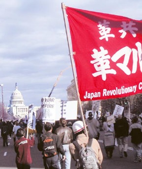 見よ! 海を越えてアメリカ本土における闘いの創造に着手しているわが全学連アメリカ派遣団は、ついに「一超」帝国の最高権力者の象徴=ホワイトハウスの眼前で真紅の全学連旗を翻した! 日本の地においても、戦闘的・革命的労働者と学生八〇〇の白ヘル部隊は、この日世界各国で起ちあがった巨万の労働者・学生とかたく連帯しながら、首都中枢を席巻する大デモンストレーションを断固として打ち抜いたのだ。 以下、見出し ホワイトハウス前に真紅の全学連旗が翻る 労学800名が米大使館―首相官邸に怒濤の進撃 「ブッシュのプードル=小泉政権を打倒せよ!」――総決起集会