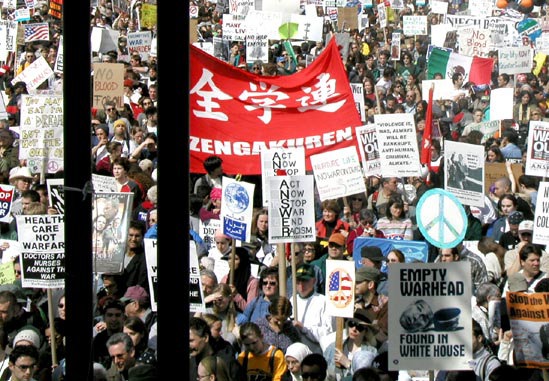 すべての諸君。いまこそ日本労働者階級の底力を発揮すべきときだ! 血迷ったブッシュ政権のイラク人民皆殺し戦争を阻止し、日本の参戦を阻止するために、すべてのたたかう労働者・学生・市民は、3・21国際連帯行動にたちあがれ! 十二時に日比谷野外音楽堂へ総結集せよ!(三月十八日) 以下、見出し 断末魔のブッシュ政権のイラク侵略を阻止せよ! 国際労働者階級の「反戦」のうねり 3・21日比谷に総結集せよ! |