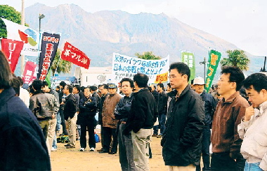 鹿児島本港区北ふ頭広場に結集した「連合鹿児島」8000名の労働者(3月8日) |