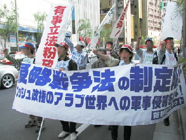「連合」中央、社共の総屈服に抗し反戦闘争の革命的高揚を! 米軍国主義帝国がメソポタミアの大地に雨あられと降り注いだ数多(あまた)の爆弾の硝煙がくすぶる現在、日本帝国主義の小泉政権は、今がチャンスとばかりに「北朝鮮の脅威」なるものを煽りたて、いよいよ念願の武力攻撃法などの有事三法の制定に突進している。タカ派防衛庁長官・石破などは、「海外での武力行使も理論上ありえる」などと公然と言い放ち、有事法がまさに侵略戦争法であることを隠そうともしていない(五月九日の国会答弁)。人権保護規定や「緊急事態基本法」などをめぐる民主党との調整=*@案修正協議が進展しようがしまいが、政府・与党は、五月十四日の衆院特別委採決、十五日の衆院本会議採決を強行しようとしているのだ。 「先制攻撃の権利」を公然と言い放つタカ派主導の民主党。「核兵器保有を主張する北朝鮮こそ問題だ」などと、「北朝鮮脅威」論の鼓吹にまきこまれた日共中央。これら野党諸党の惨状ゆえに日本の既成平和運動は、有事三法制定の攻撃にまったく太刀打ちできないでいる。今こそわれわれは、日共中央や「連合」中央の抑圧に抗してたたかう労働者・人民と共に武力攻撃法制定阻止の一大闘争を創造しなければならない。 われわれはまた、反米闘争に決起しているイラク人民と連帯して、「一超」帝国主義アメリカの「中東民主化」を名分にしたイラク軍事占領と全中東地域への軍事侵略の拡大を、断固として阻止しなければならない。 以下、見出し 開始されたイラク・ムスリム人民の反撃 暗礁にのりあげた「イラク暫定政府の樹立」構想 米軍占領支配の泥沼化 有事法の衆院採決を許すな 軍事強国化の先兵を担う民主党を弾劾せよ 「反北朝鮮」の排外主義的ナショナリズムに抗して闘おう |