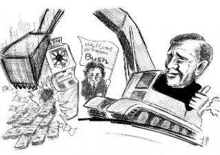 シーア派が頼りの統治評議会だが、ここに来て展望喪失。米軍長期駐留が不可避となった。困ったブッシュはぬけぬけと、「多国籍軍」編成を国連安保理に提案。占領軍の権限は譲らないけど、援軍はよこしてくれと。だが、仏・独・露・中、アナンとみなこれを拒否。多国籍軍プランの方も、展望立たず。 ただひとり、イラク派兵を決定したのがトルコ。トルコ軍派遣となれば、黙っちゃいないのがクルド人。シーア派に続いてクルド人まで統治評議会から離脱しかねない。アメリカは、そんなトルコでも大歓迎。待ち人きたらず、招かざる客のみきたる。 困難はさのみにあらず。占領のカギは復興、しかし先立つものはカネ。そのカネがひねり出せない。 世界銀行試算では、イラク復興経費は五五〇億ドル。そのうちの二〇〇億ドルまでとケチったブッシュ、それでも議会で立ち往生。民主党議員は言った、「<衝撃と恐怖>財政ではないか」。ただし米軍駐留費六七〇億ドルは、全員賛成。つまり米軍撤退には、みな反対。そのうえで、イラクの復興なんだから、石油担保の融資にしろと、外野席から言いたい放題。しかしブッシュは、それでは困る。石油担保はあまりに露骨。石油めあての戦争と、袋叩きだ。アメリカが融資に頼り、他国には無償援助を迫るのも、勝手がすぎる。ビタ一文、とれるわけがない。 復興を放棄もできぬ。そうすれば、治安は悪化、そのツケは駐留経費に回る。占領を続けるかぎり、出費はかさむ。しかし財政赤字は五六〇〇億ドルにもなった。財布よ財布よ汝をいかんせん。 もう国連に丸投げしろと? そういうわけにもブッシュはゆかぬ。政権外のネオコンどもが、もう大騒ぎ。「いまここで失敗すれば、アメリカは数十年間壊滅的な打撃を受ける」「いま修正しなかったなら、失敗は災厄にいたる」「国連に頼ったならばアメリカは尻尾を巻いたと笑われる」「それだけは受け入れがたい」と。(『The Weekly Standard』九月一―八日合併号掲載のビル・クリストル、ロバート・ケーガンの論文) ネオコンは言う。「もっとお金を」「もっと軍隊を」と。「Do What It Takes in Iraq(イラクでやるべきことをやれ)」と。そんなことならブッシュでも百も承知だ。だがしかし、ホワットだけでは、やっていけない。ハウがなければ、権力者はつとまりません。「いかにしてお金をとるか」「いかにして兵隊つれて来させるか」これをクリアーするのがオレ様だ。そこでブッシュは考えた。――ニッポンから、と。 ニッポンといえばアーミテージだ。「ショー・ザ・フラッグ」、この一言でテロ対策特措法。「ブーツ・オン・ザ・グラウンド」、そしたらイラク特措法。そしてこんどは「ドーント・ウォーク・アウェイ」。これだけで日本政府の態度は急変。「自衛隊年内派遣はムリ」と言った、その舌の根も乾かぬうちに、「日本はイラク支援にひるんではならない」ときた。世に「アーミテージ効果」と言うらしい。 それもこれも、ニッポン政治エリートのものわかりのよさのせい。アメリカの理不尽さえも受け入れる、おかしな国は世界でもニッポンひとり。 ネオコンの広報紙かと見まちがう「読売」いわく、――アメリカは山で遭難した人にたとえるべきで、フランスやドイツのように、「無謀だ」と非難するのはまちがいだ。「死地に入った」アメリカが「苦しい時期を乗り越え」る過程にあると理解して、日本はカネも兵隊も出そうじゃないか。(九月二十八日付「地球を読む」岡崎久彦) 無謀登山で遭難すれば、こりゃ当人の責任だ。身柄は回収、費用は全額本人負担。アメリカはただちに撤退、賠償金を支払うべきとなるのが道理。フランス、ドイツの非難こそ、まだしも常識的というべし。スジの通らぬデタラメを言うのは日本政府だけ。 こういう日本だからこそ、ブッシュにとっては地獄にホトケ。こんな便利な国はない。ブッシュが議会の追及をかわすときにも日本が頼り。大丈夫、日本が金を出してくれるさ。日本は気前のよい国だから。まるでATMだから。 そんなブッシュが鼻歌まじりにやってくる。いざ、迎え撃たん! |