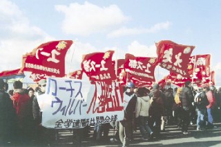 三月六日、全学連関西共闘会議のたたかう学生たちは、大阪南港で米イージス艦カーチスウィルバー入港阻止の闘いに決起した。 |