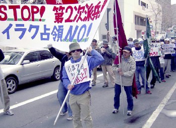 全道の学生が「第2次派兵反対」の反戦行動(4月25日、札幌) |