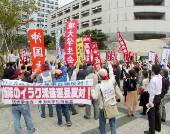 海兵隊のイラク出撃を弾劾 12・10沖縄平和運動センター集会 〇四年十二月十日、那覇市県民ひろばにおいて「自衛隊のイラク派遣反対! 政府の派遣延長閣議決定に抗議する集会」(主催・沖縄平和運動センター)がおこなわれた。 |