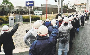たたかう労学が陸自第十師団に弾劾の拳(一月十五日、守山駐屯地前) |