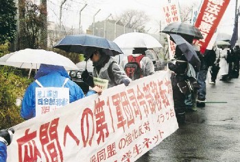 キャンプ座間の在日米軍司令部を労働者・市民と共に包囲する学生たち |
