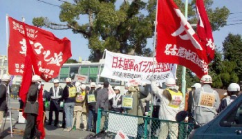 二月二十日、全学連東海地方共闘会議と名古屋地区反戦のたたかう労学は、陸上自衛隊第十師団の第五次イラク出兵第三波部隊の守山駐屯地からの出撃を、断固阻止するために勇躍決起した。現地闘争から完全に逃亡し四月の名古屋市長選挙向けのカンパニアに埋没している日共系の反対運動をのりこえるかたちでたたかいぬいたのだ。 |