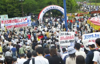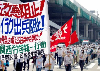 海外派兵のための「九条改憲」に踏み切った自治労本部弾劾! リード すべての自治体労働者のみなさん! とりわけ自治労の組合員のみなさん! 自治労本部はまさに今、「九条改憲」の方針を八月の鹿児島大会においてなにがなんでも決定する意志をむきだしにして、「護憲」を掲げている各県本部を恫喝してまわっている。日教組本部にたいしても、はやく護憲の旗を降ろせ!≠ニ圧力をかけている。「戦力を保持すること、そしてこの戦力を国際貢献に使うことを、憲法に明記せよ!」と叫んでいる「連合」会長・笹森――この輩に尻をたたかれて、自治労をはじめ旧総評系諸労組を、民主党の九条改憲案を支持する改憲推進大運動に組織していく先兵役をかってでているのが、自治労本部の右派ダラ幹どもなのだ! 憲法第九条を踏みにじってイラク派兵を強行してきた小泉政権が、戦争狂ブッシュのおしつけ≠ノ従って憲法改悪を一気に成し遂げようとしている今日このときに、自治労本部は「九条改憲」に踏みきり、改憲翼賛の旗を振っている。これを歴史的大罪と言わずして何と言うのか! すべての自治体労働者は、この世紀の大裏切りを怒りを込めて弾劾し、「戦争のできる国」への飛躍をたくらむ政府・支配階級の憲法改悪の大攻撃をうち砕くために、今こそともにたちあがろう!〔五月十日付の自治体労働者委員会のビラを掲載します。〕 自治労本部の歴史的大罪を弾劾せよ! 平和フォーラムの5・3「改憲集会」弾劾! 九条を否定し海外派兵を認める「平和基本法制定」方針を許すな! 本部のワナにはまった反本部派県本部の限界をのりこえて闘おう! 「自治体リストラ」の諸攻撃をはねかえそう! 〈改憲阻止・イラク反戦・反安保〉の闘いを! スローガン ◆「改憲」の旗を振る「連合」笹森執行部を弾劾し憲法改悪を断固阻止しよう! ◆海外派兵を認める「平和基本法制定」方針反対! ◆五月中央委員会・八月鹿児島大会での「九条改憲」方針の決定を絶対に阻止しよう! |