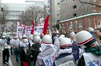自民党道連に向けて進撃する労学(4・30、札幌) |