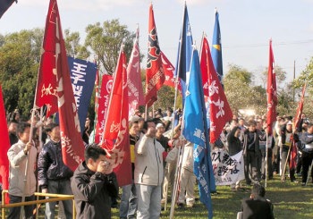 指導部の歪曲を許さず闘う労働者たち(崎守臨海公園) |