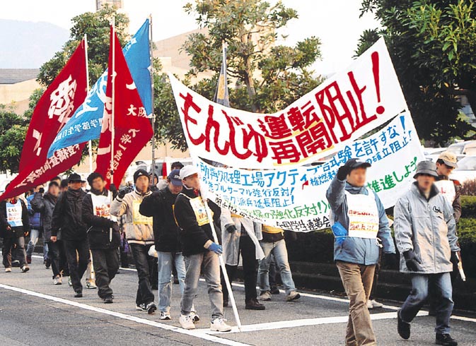 敦賀市街に「運転再開阻止!」の声を轟かせる (05年12月10日) |