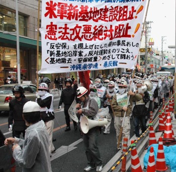 改憲阻止・反安保の火柱 1・22沖縄の労学が戦闘的デモ |