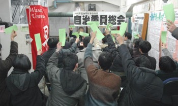 満場一致で闘う方針を採択(2月2日、社学自治委員総会) |