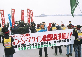 2月24日、鹿児島大学のたたかう学生たちは、米イージス艦「ジョン・S・マケイン」の鹿児島港谷山岸壁への寄港を阻止するためにたちあがった。 |