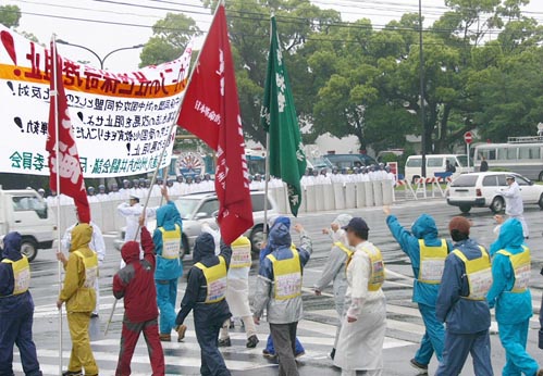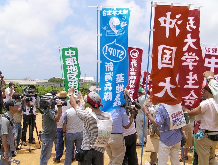 機動隊の壁に守られた米海軍基地に肉迫(5・27、佐世保市) | |