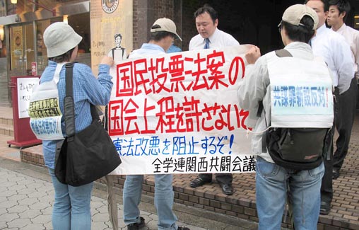 「国民投票法案の国会上程弾劾!」 自民党大阪府連に抗議 |