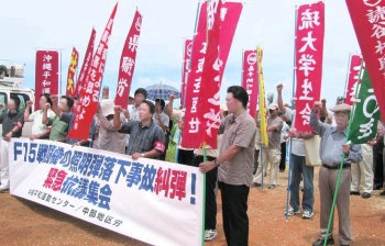 米軍機の照明弾誤発射に抗議(8・28、嘉手納) |