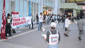 ブッシュ盲従の新首相・安倍が所信表明演説において「集団的自衛権行使の研究」を傲然とブチあげた九月二十九日、東海地方のたたかう学生は、名古屋・金山(かなやま)で、改憲・教基法改悪阻止の闘いを職場・学園・地域から創造することをよびかける大情宣をおこなった。 | |