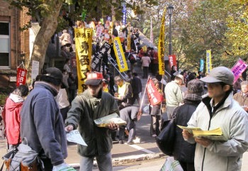 日教組3500名が怒りの決起 結集する組合員たちにわが同盟情宣隊が檄(11・25 日比谷) |