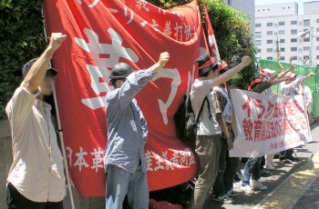 米―中露の軍事的・政治的角逐がますます激化するいま、安倍政権は、ブッシュへの誓約にもとづき日米新軍事同盟の強化と憲法の改定に拍車をかけている。安倍の自民党は、年金納付記録の不明・年金不払いへの労働者・人民の不信と反発にさらされガタガタになりながらも、この窮地の突破をもかけて「二〇一〇年の国会で憲法改正案の発議をめざす」ことを参院選の選挙公約として傲然とぶちあげた。 だがこのときに、腹の内では「改憲翼賛・安保同盟強化支持」の意志を固めている「連合」指導部、および「反安保」なき「九条改悪反対の一点での共同」を提唱しつつ参院選にむけてのカンパニアに埋没している日共中央による抑圧と歪曲のもとで、改憲反対の運動は総じて沈滞を余儀なくされている。 こうした反対運動の危機を突き破ることをめざして、たたかう労学は、首都中枢を席巻するデモをたたかいぬいた。日本の労働者・人民の最先頭において、安倍政権による改憲総攻撃を打ち砕く闘いの行く手を鮮明に指し示したのである。同日、北海道、東海、関西で決起した労働者・学生と固く連帯しつつ。 警察権力は、このわが労学の闘いに憎悪をたぎらせ、全学連の学生二名を不当にも逮捕した。安倍政権は、わが労学の闘いを「戦争をやれる国」づくりにとっての決定的な障害物とみなし、階級的憎悪をたぎらせて弾圧の刃を振りおろしたのだ。 この警察権力によるファシズム的弾圧を、わがたたかう労働者・学生は満腔の怒りをこめて弾劾し、戦闘的デモンストレーションを断固たたかいぬいた。 すべての労働者・学生諸君! 警察権力による全学連の学生二名の不当逮捕を弾劾せよ! 6・17闘争の切り開いた地平にふまえ、改憲阻止・日米新軍事同盟の強化反対・ネオファシズム反動化阻止の闘いの怒濤の前進をかちとれ! (以下、見出し) 弾圧に抗して戦闘的デモ 改憲総攻撃を打ち砕く決意固める―総決起集会 反対運動の危機を突き破り改憲阻止・反安保の闘いを創造 ファシズムの嵐に抗し安倍内閣打倒めざして闘おう! |