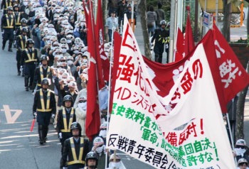 関西学生反戦ウォーク(10・6) 十月六日、関西のたたかう学生たちは、奈良女子大学自治会委員長と「改憲・安保強化NO! 神戸大生の会」代表の呼びかけのもとに、テロ特措法新法の制定を絶対に阻止する決意に燃えて「関西学生反戦ウォーク」に勇躍決起した。 |