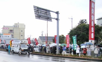七尾マリンパーク前で抗議のシュプレヒコール (11月11日) |