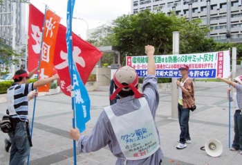 | 県学連がG8科技相会合反対に決起(沖縄) 六月十五日に名護市で、初めてのG8科学技術大臣会合が洞爺湖サミットの関連会議として開催された。これに反対して、沖縄県学連の学生は「環境破壊を促進するサミット反対!」を掲げ抗議闘争に起ちあがった。 |