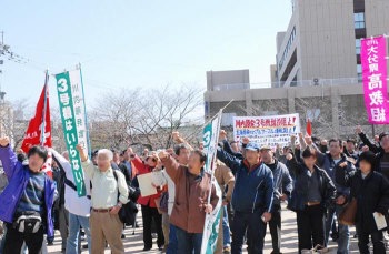 「3号機増設阻止!」労・学・住民の力強いシュプレヒコール (2月21日、薩摩川内市) |