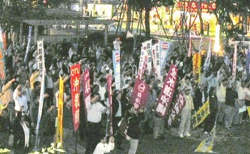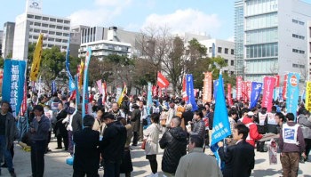 労働者2000名が結集、09春闘の決意固める (3月1日、福岡・冷泉公園) |