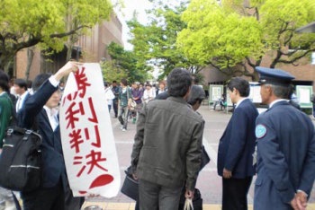 「退学処分は違法・無効」判決かちとる 4・28 大阪地裁 以下、見出し 学生たちの主張の正当性を全面的に承認 大学当局の犯罪を法廷内外で暴きだす さらに追撃の闘いをおしすすめよ |