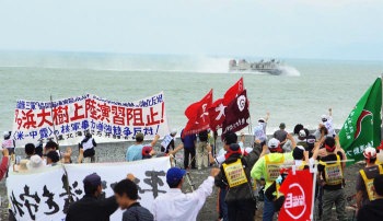 | 七月九日、全学連北海道地方共闘会議と首都圏および関西のたたかう学生たちは、自衛隊による浜大樹敵前上陸演習を阻止する現地闘争に断固として決起した。平和運動フォーラム主催の浜大樹上陸演習反対集会に結集し労働者とともに現地において奮闘したのである。 | |