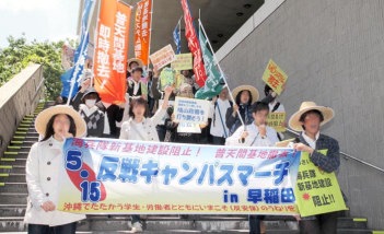 沖縄の学生・労働者と連帯し「普天間基地撤去!」の怒りのデモ (5・15、早稲田大学) |