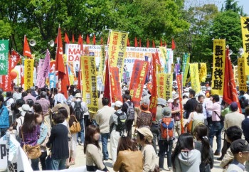 日共の参院選宣伝への歪曲に抗して闘う労働者が奮闘 ――5・1「愛労連」メーデー 名古屋市名城公園 |