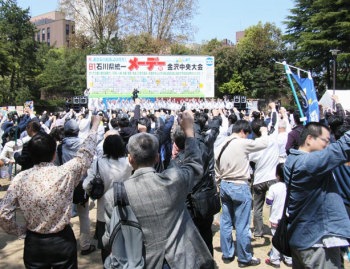 鳩山尻押しの労働貴族に怒り 5・1「連合石川」メーデー 金沢中央公 |