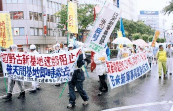 | 那覇・名護で労・学・市民が決起 5・28 アメリカ・オバマ政権とこれに屈服した鳩山政権は、ついに五月二十八日、「普天間基地」の「辺野古」への移設を明記するのみならず、米軍の訓練の日本全土への拡大をも謳った日米共同声明を発表した。沖縄の労働者・学生・市民は、鳩山政権のこの許しがたい所業への満腔の怒りに燃えて、「日米共同声明弾劾! 辺野古海兵隊新基地建設阻止! 普天間基地即時撤去!」の闘いに決起した。 |