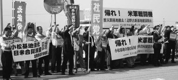 日米両政府に合同軍事演習弾劾の声をつきつける労働者たち |