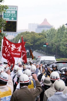 しかも胡錦濤政権は、アメリカ帝国主義のオバマ政権が執拗にくりひろげている黄海および東シナ海における韓国・日本との合同軍事演習に対抗して、これら全海域での軍事演習をくりかえしている。黄海での米軍演習を阻止するのみならずあくまでも東シナ海・南シナ海の制海権をアメリカ帝国主義から奪取するために、海底資源の支配と尖閣諸島「領有」の野望をもたぎらせて、ロシア権力者との同盟的結束を強化しつつ。さらには「人民元切り上げ」を叫びたてるオバマ政権(およびEU諸国権力者)にたいして、対日制裁に味をしめレアアースの禁輸という対抗措置をもとろうとしているのだ。 いよいよ図に乗る胡錦濤の中国を封じこめるために、オバマ政権は、米日の「離島奪還」合同演習などの強行を策しているのみならず、最強の核軍事力≠中国・ロシア両権力者に見せつけるために傲然と未臨界核実験をも強行している。そして、中国政府の対日制裁の強硬策に屈服しうちひしがれている日本帝国主義の菅政権は、胡錦濤の中国に対抗するために、よりいっそうオバマ政権にしがみつき、日米新軍事同盟の飛躍的強化とこれを基軸としての<アジア・太平洋版NATO>結成への道を突き進んでいるのだ。 それだけではない。菅政権はいま、経済危機の犠牲を労働者・勤労人民におしつけようとしているのだ。アメリカ、EU諸国(独・仏)と中国の各政府が相互に国家エゴイズムをむきだしにして実質上の為替ダンピング競争をくりひろげているもとで、円の独歩高がすすんでいる。この円高に直撃され日本経済の不況がよりいっそう深刻化する様相をしめしているなかで、菅政権は、日本の諸独占体を支援し救済するために、独占ブルジョアジーが要求している法人税減税の年内決定と「新成長戦略」の前倒し実施の意志を明らかにするとともに、消費税大増税をも準備している。 にもかかわらず、「連合」指導部は、法人税減税をはじめとするこの菅政権の反人民的諸政策を、公然と支持している。しかも、彼ら労働貴族どもは、来年の春闘にむけて、「中長期的な視点で賃金の回復を図る」などと称して、またしてもナショナルセンターとしては「賃上げ」を求めないことを決定したのだ(十月二十一日、中央執行委員会)。 たたかう労働者・勤労人民の諸君! 菅民主党政権による<戦争と貧困の強制>を甘受し、日本労働運動を「救国」産報運動におとしめている「連合」指導部を弾劾せよ! 既成労働運動指導部の腐敗を許さず、菅政権による独占体救済のための国家資金=血税投入と労働者・人民への犠牲転嫁に反対する政治経済闘争を、「米―中の相互対抗的軍事演習反対・日米新軍事同盟の強化反対」の反戦反安保闘争と同時的一体的に推進しようではないか。 (以下見出し) 激化する<三極>間の通貨=通商戦争 円独歩高と不況の長期化に苦悶する日本帝国主義 独占体の支援・救済に突進する菅政権 <戦争と貧困>を強制する菅政権打倒めざして闘おう