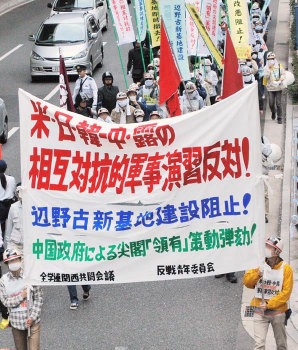 那覇市街を進撃する白ヘル部隊 (10・24) |