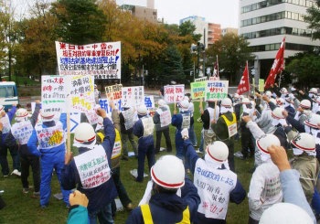 大通公園に労学のシュプレヒコールが轟く (10・24、札幌) |