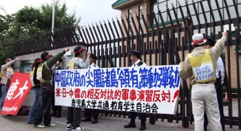 | 十月二十三日に、鹿児島大学共通教育学生自治会のたたかう学生たちは、福岡市にある中国総領事館にたいして中国・胡錦濤政府による尖閣諸島「領有」策動を弾劾する抗議行動に決起した。 | |