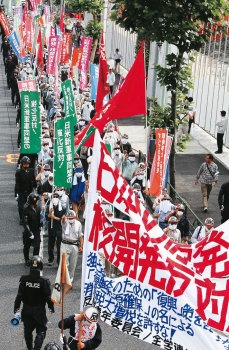 「原発なくせ!」―6万労・学・市民が怒りの大結集(9・19、明治公園)。政府・電力独占体の原発再稼働策動への危機感と、被曝を強制しつづけている政府・東電への怒りに燃え「さようなら原発5万人集会」に大結集。革命的・戦闘的労働者・学生は、この集会の戦闘的高揚のために奮闘した | ||