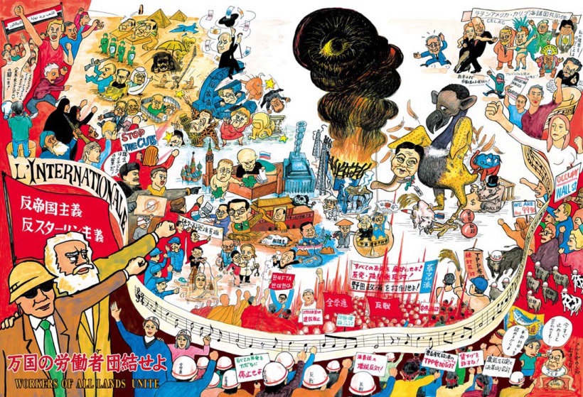 起て飢えたる者よ 今ぞ日は近し! 覚めよわが同胞(はらから) 暁は来ぬ 革命ロシアの遺産が 破壊され尽くしてから二十年 断末魔の帝国主義は 腐りきった体躯をひきずり 放射能をばらまき 労働者・人民をふみしだく 窮乏と圧政の暗黒の淵から 労働者階級・人民は起ちあがった カイロで、アテネで、ニューヨークで結集し声をあげる 「政府打倒!」「解雇撤回!」 「富裕者を収奪しろ!」 この隊列の先頭に いまこそ 〈反スターリン主義〉の旗を はためかせよ 暴虐の鎖断つ日 旗は血に燃えて 海をへだてつ我ら 腕(かいな)結びゆく 大震災と核惨事に覆われた この地から 我らは起ちあがらん 労働者国際主義(プロレタリアインターナショナリズム)に立脚し 全世界の闘いを領導せん 暗黒の二十一世紀を 《戦争と革命》の第二世紀に転化せよ いざたたかわんいざ 奮い起ていざ! ああ インターナショナル 我らがもの |