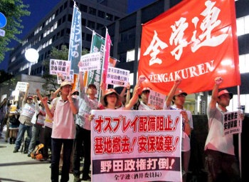 オスプレイ岩国搬入を強行したオバマ政権へ怒りを叩きつける全学連 (7・23、米大使館前) |