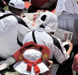 多くの参加者が『解放』号外をくいいるように読んでいた |