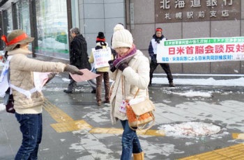 道共闘が「日米首脳会談反対! TPP参加反対!」の情宣 2・21 札幌