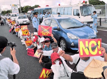 | 「オスプレイ追加配備阻止!」 普天間基地野嵩ゲート前で実力阻止の激闘を闘い抜く ゲート封鎖・国道座り込みで反撃 8・2〜12 |
