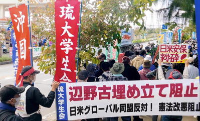| 12・3 那覇 十二月三日、県庁前「県民ひろば」に労組員や市民が続々と結集する。「岸田政権による安保の強化を粉砕しよう!」「大浦湾埋め立てを阻止しよう!」わが同盟情宣隊が<反安保・反ファシズム>の旗幟鮮明なビラを配布。 | |